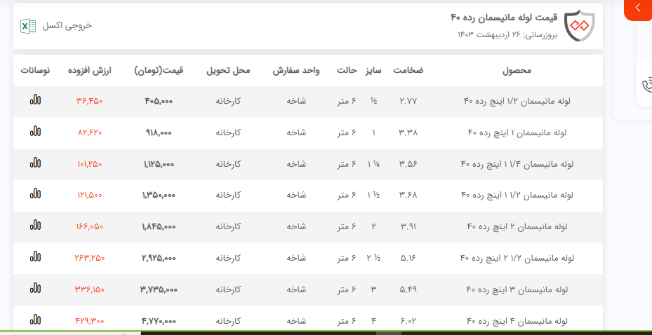 آذین سپهر الوند💫 #لوله مانیسمان 💯 🔴سایز1 اینچ رده20 برند وارداتی واحد شاخه 🔴سایز1/2 اینچ رده20 برندوارداتی واحدشاخه 🔴سایز3/4 اینچ رده20 برندوارداتی واحدشاخه 🔴سایز1/2 2 اینچ رده20 برندوارداتی واحدشاخه 🔴سایز2 اینچ رده20 برندوارداتی واحدشاخه 🔴سایز1/2 1 اینچ رده20 برندوارداتی واحدشاخه 🔴سایز3 اینچ رده20 برندوارداتی واحدشاخه 🔴سایز1/4 1 اینچ رده20 برندوارداتی واحدشاخه 🔴سایز4 اینچ رده20 برند وارداتی واحدشاخه 🔴سایز5 اینچ رده20 برندشوارداتی واحد شاخه 🔴سایز6 اینچ رده20 برندوارداتی واحدشاخه 🔴سایز8 اینچ رده20 برندوارداتی واحدشاخه ❗به دلیل نوسانات بازار برای تایید موجودی و قیمت وثبت سفارش تماس بگیرید❗ کانال تلگرام 🤳 https://t.me/azinsepehralvand سایت🌐 www.azinsepehrco.com ☎️☎️☎️☎️☎️☎️ 📞09132381828 📞09394117828 📞03152467528 https://t.me/azinsepehralvan