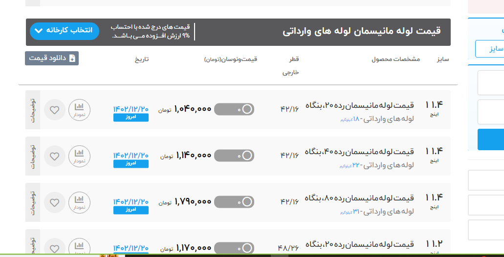 🗓دوشنبه 21 اسفندماه 1402 #لوله_مانیسمان_وارداتی 📍بارگیری از انبار پیوان 🔴رده 20 🟠سایز 8 اینچ رده 20 ⬅️ 17.200.000 تومان 🔴رده 40 🟠 سایز 5 اینچ رده 40 ⬅️ 6.900.000 تومان 🟠 سایز 6 اینچ رده 40 ⬅️ 9.500.000 تومان 🟠 سایز 8 اینچ رده 40 ⬅️ 22.300.000 تومان #لوله #لوله_مانیسمان #لوله_و_اتصالات مشاهده لیست قیمت : https://pivan.co/product-category/pipe/manisman-pipe/ ✅ثبت سفارش،مشاوره و ارتباط با کارشناسان فروش: 🌐Pivan.co ☎️021-45171 ✅کانال تلگرام https://t.me/Pivan_co