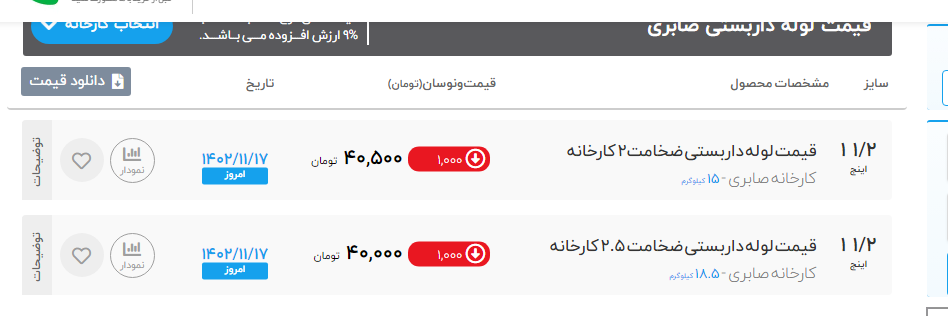 🔻 #گروه_صنعتی_سپاهان ▪️لوله گاز روکار: 1/2" و "3/4 ضخامت 2/5 ⬅️ 47851 تومان 2\1 و 3/4 ضخامت2/30 ⬅️ 48396 تومان ▪️لوله مانیس گاز API: 1/2" تا "4 ضخامت 2/8 تا 4.4 ⬅️ 50031 تومان ▪️لوله تست: 1/2 2 تا "8 ضخامت 2/5 تا 4 به بالا⬅️ 46216 تومان ▪️لوله صنعتی : 1/2 تا "4 ضخامت 2 ⬅️ 42045 تومان 1/2 تا "8 ضخامت 2/5 تا 6 ⬅️ 44199 تومان ‼️توجه لیست قیمت محصولات 2/8 و 3 میزان 1000 تومان بالاتر از قیمت لیست میباشد❌ 📌قیمتها با احتساب ۹٪ مالیات و فروش رسمی میباشد✅ 📞031-45400945 📞031-91013608 📲09131273851 آقای مولوی 📲09137412265 خانم صحراکار 📲09137412146 خانم امیری www.aflakahan.com @ahanmoolaviali #اعتماد_شما_آغاز_تعهد_ماست🤝