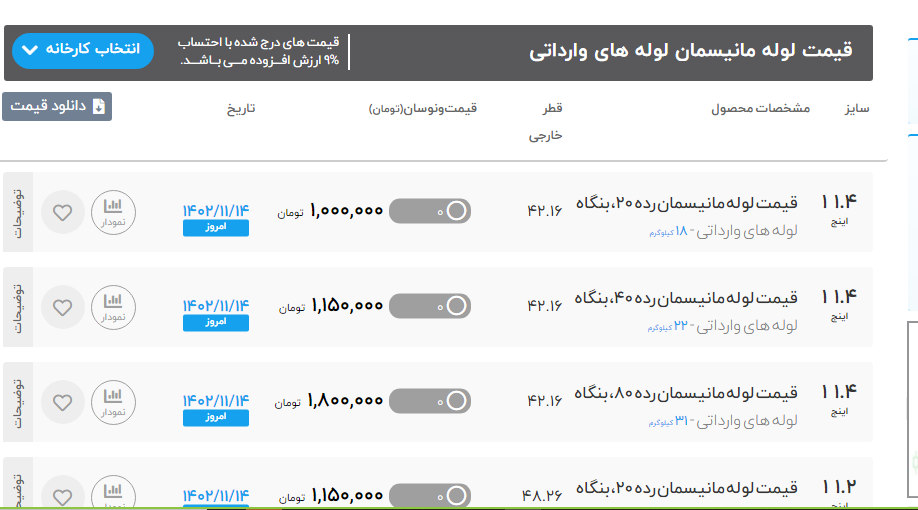 آذین سپهر الوند💫 #لوله مانیسمان 💯 🔴سایز1 اینچ رده20 برند وارداتی واحد شاخه 🔴سایز1/2 اینچ رده20 برندوارداتی واحدشاخه 🔴سایز3/4 اینچ رده20 برندوارداتی واحدشاخه 🔴سایز1/2 2 اینچ رده20 برندوارداتی واحدشاخه 🔴سایز2 اینچ رده20 برندوارداتی واحدشاخه 🔴سایز1/2 1 اینچ رده20 برندوارداتی واحدشاخه 🔴سایز3 اینچ رده20 برندوارداتی واحدشاخه 🔴سایز1/4 1 اینچ رده20 برندوارداتی واحدشاخه 🔴سایز4 اینچ رده20 برند وارداتی واحدشاخه 🔴سایز5 اینچ رده20 برندشوارداتی واحد شاخه 🔴سایز6 اینچ رده20 برندوارداتی واحدشاخه 🔴سایز8 اینچ رده20 برندوارداتی واحدشاخه ❗به دلیل نوسانات بازار برای تایید موجودی و قیمت وثبت سفارش تماس بگیرید❗ کانال تلگرام 🤳 https://t.me/azinsepehralvand سایت🌐 www.azinsepehrco.com ☎️☎️☎️☎️☎️☎️ 📞09132381828 📞09394117828 📞03152467528 https://t.me/azinsepehralvan