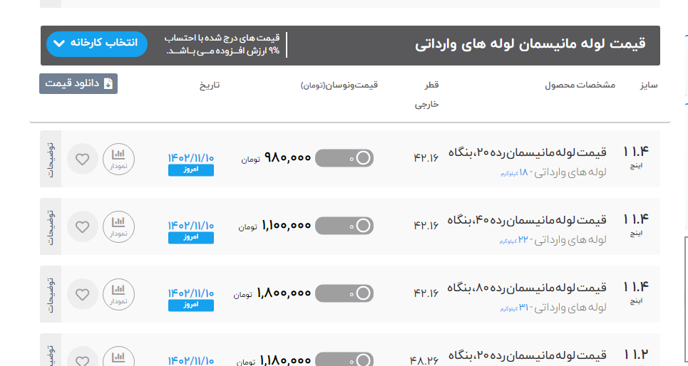 1402/10/11 ⭐️ #لوله_مانیسمان_بدون_درز تحویل: #انبار_تهران ▫️رده ۲۰ (قیمت شاخه) - #چین🇨🇳 مانیسمان ۱/۲ اینچ ⬅️ ۳/۵۰۰/۰۰۰ مانیسمان ۳/۴ اینچ ⬅️۴/۵۰۰/۰۰۰ مانیسمان ۱ اینچ ⬅️۶/۵۰۰/۰۰۰ مانیسمان ۱/۴ ۱ اینچ ⬅️۹/۵۰۰/۰۰۰ مانیسمان ۱/۲ ۱ اینچ ⬅️۱۱/۰۰۰/۰۰۰ مانیسمان ۲ اینچ ⬅️۱۴/۰۰۰/۰۰۰ مانیسمان ۱/۲ ۲ اینچ ⬅️۱۸/۳۰۰/۰۰۰ مانیسمان ۳ اینچ ⬅️ ۲۶/۰۰۰/۰۰۰ مانیسمان ۴ اینچ ⬅️۳۵/۵۰۰/۰۰۰ مانیسمان ۵ اینچ ⬅️ مانیسمان ۶ اینچ ⬅️۶۴/۰۰۰/۰۰۰ مانیسمان ۸ اینچ ⬅️۱۶۵/۰۰۰/۰۰۰ مانیسمان ۱۰ اینچ ⬅️ ۱۵۵/۰۰۰/۰۰۰ ✅فاکتور رسمی ⬅️ قیمت ها با تایید می باشند. # آهن آرسام تامین کننده لوله مانیسمان (بدون درز) ،پترو شیمی ، درزدار ، تیرآهن ، پروفیل ، نبشی ، ناودانی و ورق تلفن تماس: 09337494534 09939481108 سایت: Www.arsam24.ir واتساپ ، روبیکا 09337494534 لینک تلگرام https://t.me/ARSSAM24
