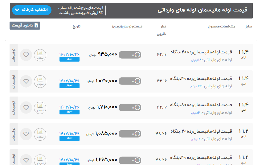 اعلام موجودی لوله مانیسمان آهن پرایس