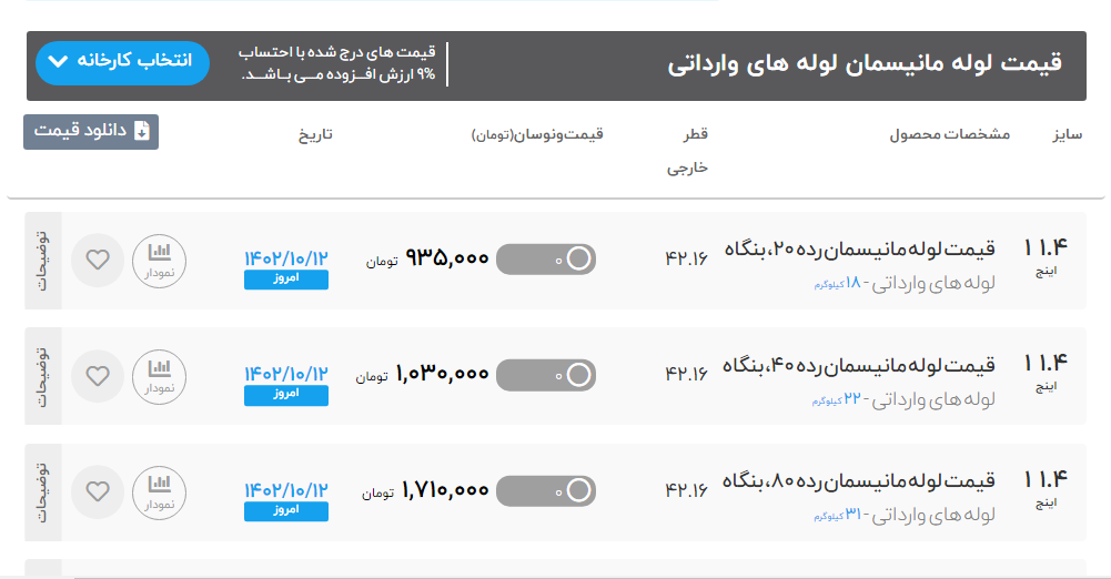 سایز1 اینچ رده20 برند وارداتی واحد شاخه سایز1/2 اینچ رده20 برندوارداتی واحدشاخه سایز3/4 اینچ رده20 برندوارداتی واحدشاخه سایز1/2 2 اینچ رده20 برندوارداتی واحدشاخه سایز2 اینچ رده20 برندوارداتی واحدشاخه سایز1/2 1 اینچ رده20 برندوارداتی واحدشاخه سایز3 اینچ رده20 برندوارداتی واحدشاخه سایز1/4 1 اینچ رده20 برندوارداتی واحدشاخه سایز4 اینچ رده20 برند وارداتی واحدشاخه سایز5 اینچ رده20 برندشوارداتی واحد شاخه سایز6 اینچ رده20 برندوارداتی واحدشاخه سایز8 اینچ رده20 برندوارداتی واحدشاخه جهت اطلاع از قیمت با شماره 03152467528 داخلی 100-103تماس بگیرید و یا از لینک تلگرام azinsepehralvand1@ ثبت سفارش کنید.