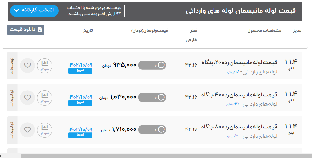 اعلام موجودی لوله مانیسمان آهن پرایس