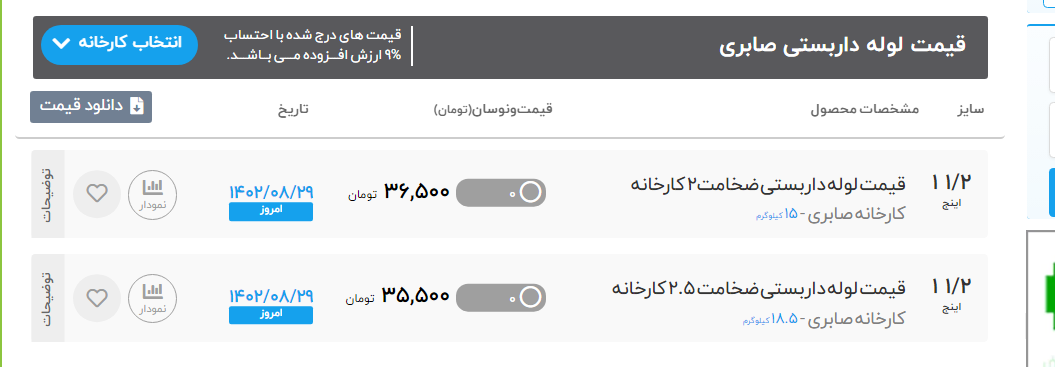 اعلام موجودی لوله صنعتی