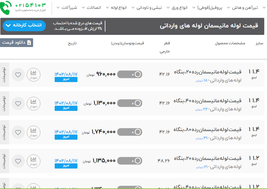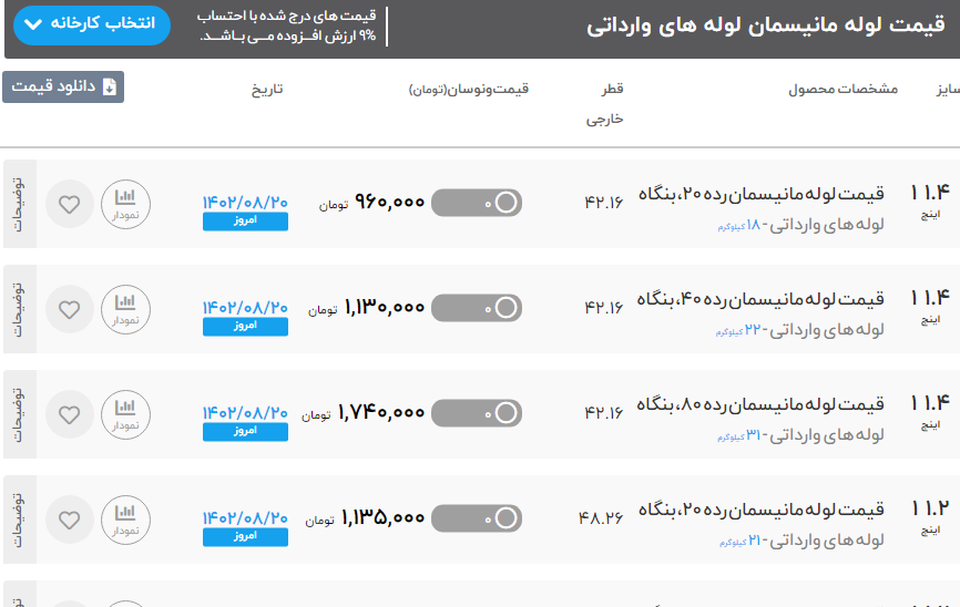 سایز1 اینچ رده20 برند وارداتی واحد شاخه سایز1/2 اینچ رده20 برندوارداتی واحدشاخه سایز3/4 اینچ رده20 برندوارداتی واحدشاخه سایز1/2 2 اینچ رده20 برندوارداتی واحدشاخه سایز2 اینچ رده20 برندوارداتی واحدشاخه سایز1/2 1 اینچ رده20 برندوارداتی واحدشاخه سایز3 اینچ رده20 برندوارداتی واحدشاخه سایز1/4 1 اینچ رده20 برندوارداتی واحدشاخه سایز4 اینچ رده20 برند وارداتی واحدشاخه سایز5 اینچ رده20 برندشوارداتی واحد شاخه سایز6 اینچ رده20 برندوارداتی واحدشاخه سایز8 اینچ رده20 برندوارداتی واحدشاخه جهت اطلاع از قیمت با شماره 03152467528 داخلی 100-103تماس بگیرید و یا از لینک تلگرام azinsepehralvand1@ ثبت سفارش کنید.