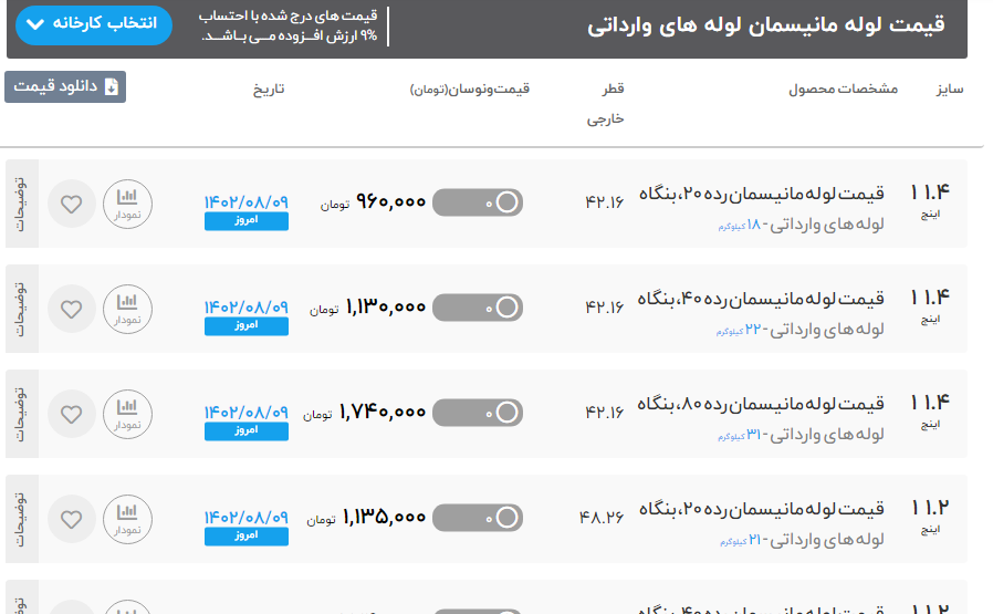 اعلام موجودی لوله صنعتی