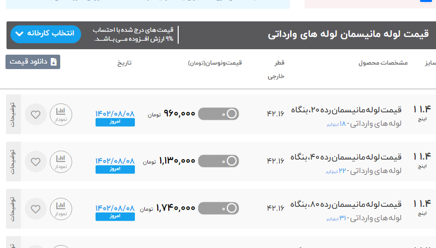 سایز1 اینچ رده20 برند وارداتی واحد شاخه سایز1/2 اینچ رده20 برندوارداتی واحدشاخه سایز3/4 اینچ رده20 برندوارداتی واحدشاخه سایز1/2 2 اینچ رده20 برندوارداتی واحدشاخه سایز2 اینچ رده20 برندوارداتی واحدشاخه سایز1/2 1 اینچ رده20 برندوارداتی واحدشاخه سایز3 اینچ رده20 برندوارداتی واحدشاخه سایز1/4 1 اینچ رده20 برندوارداتی واحدشاخه سایز4 اینچ رده20 برند وارداتی واحدشاخه سایز5 اینچ رده20 برندشوارداتی واحد شاخه سایز6 اینچ رده20 برندوارداتی واحدشاخه سایز8 اینچ رده20 برندوارداتی واحدشاخه جهت اطلاع از قیمت با شماره 03152467528 داخلی 100-103تماس بگیرید و یا از لینک تلگرام azinsepehralvand1@ ثبت سفارش کنید.