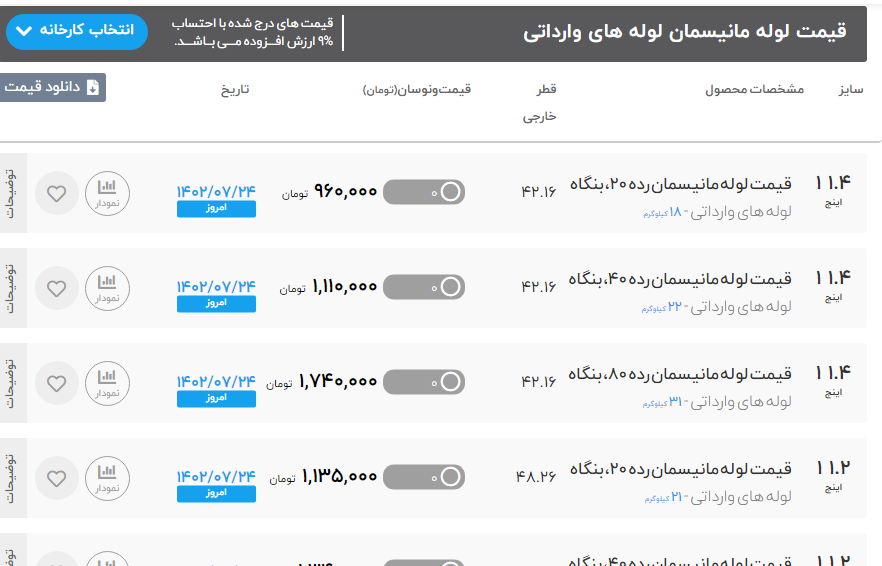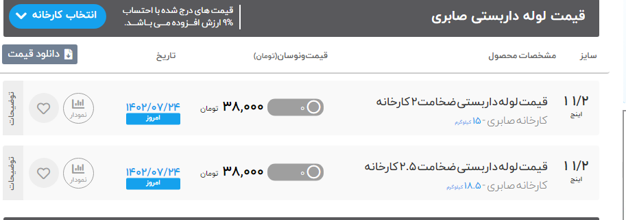 لوله "1/2 ضخامت 2 میل ⬅️ 39000 تومان لوله "3/4 ضخامت 2 میل ⬅️ 39000 تومان لوله "1 ضخامت 2 میل ⬅️ 39000 تومان لوله "11/4 ضخامت 2 میل ⬅️ 39000 تومان لوله "11/2 ضخامت 2 میل ⬅️ 39000 تومان لوله " 2 ضخامت 2 میل ⬅️ 39000 تومان لوله 2/30 و 2/50 ض 3 میل ⬅️ 38000 تومان