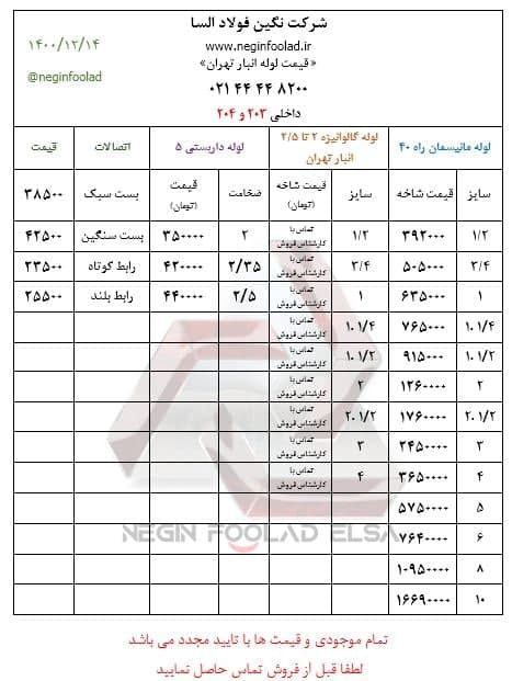 ✅ آهن استیل یکتا ♨️ تهیه و توزیع تمامی مقاطع فولادی، آهن و استیل : 🔷تیر آهن و میلگرد و نبشی و ناودانی 🔷انواع ورق گرم و سرد و گالوانیزه و رنگی 🔷قوطی و پروفیل صنعتی و ساختمانی 🔷انواع لوله و اتصالات 🔷انواع استیل 🔷فلزات و ورق های آلیاژی ☎️ 021-54071 📲0912654599