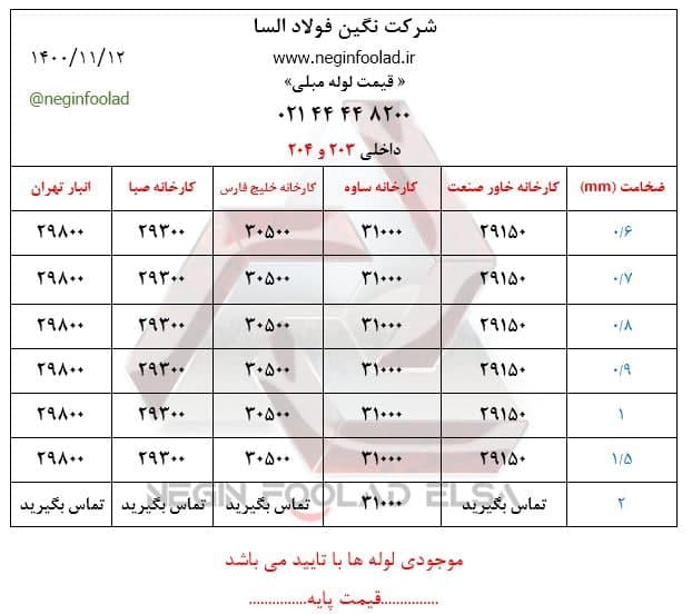 🔴آهنک🔴 06بهمن1400 ⭕️ لوله مانیسمان سبک 🔖انبار تهران 🔘لوله مانیسمان سبک چین سایز 1/2 🔘لوله مانیسمان سبک چین سایز 3/4 🔘لوله مانیسمان سبک چین سایز 1 🔘لوله مانیسمان سبک چین سایز 1.1/2 🔘لوله مانیسمان سبک چین سایز 1.1/4 🔘لوله مانیسمان سبک چین سایز 2 🔘لوله مانیسمان سبک چین سایز 2.1/2 🔘لوله مانیسمان سبک چین سایز 3 🔘لوله مانیسمان سبک چین سایز 4 🔘لوله مانیسمان سبک چین سایز 5 🔘لوله مانیسمان سبک چین سایز 6 🔘لوله مانیسمان سبک چین سایز 8 🔘لوله مانیسمان سبک چین سایز 10 🔘لوله مانیسمان سبک چین سایز 12 🔘لوله مانیسمان سبک چین سایز 14 🔘لوله مانیسمان سبک چین سایز 16 ⭕️لوله مانیسمان رده 40 ( چین) 🔖 انبار تهران 🔘سایز 1/2 4.290.000 🔘سایز 3/4 5.150.000 🔘سایز 1 5.990.000 🔘سایز 1,1/4 7.330.000 🔘سایز 1,1/2 8.690.000 🔘سایز 2 11.460.000 🔘سایز 2,1/2 17.530.000 🔘سایز 3 24.320.000 🔘سایز 4 36.370.000 🔘سایز 5 57.240.000 🔘سایز 6 76.300.000 🔘سایز 8 109.300.000 🔘سایز 10 166.900.000 ⭕️ لوله مانیسمان رده 80 🔖انبار تهران 🔘لوله مانیسمان رده80 چین سایز 1/2 🔘لوله مانیسمان رده80 چین سایز 3/4 🔘لوله مانیسمان رده80 چین سایز 1 🔘لوله مانیسمان رده80 چین سایز 1.1/2 🔘لوله مانیسمان رده80 چین سایز 2 🔘لوله مانیسمان رده80 چین سایز 2.1/2 🔘لوله مانیسمان رده80 چین سایز 3 🔘لوله مانیسمان رده80 چین سایز 4 🔘لوله مانیسمان رده80 چین سایز 5 🔘لوله مانیسمان رده80 چین سایز 6 🔘لوله مانیسمان رده80 چین سایز 8 🔘لوله مانیسمان رده80 چین سایز 10 🔘لوله مانیسمان رده80 چین سایز 12 🔘لوله مانیسمان رده80 چین سایز 14 🔘لوله مانیسمان رده80 چین سایز 16 ✔️قیمت و موجودی کالا با تایید دفتر فروش می باشد. داخلی 161 ☎️021-91006007 📱09103146761 🌐 https://ahanak.com 📷 instagram.com/ahanak.ir با ما همراه باشید در 👇👇👇👇👇 🆔t.me/ahanak_profil
