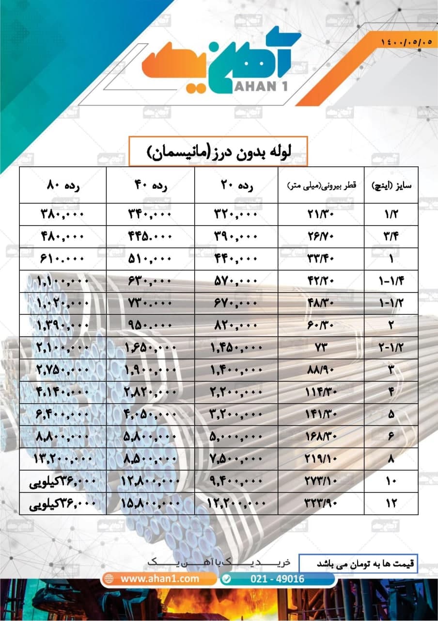#لوله #مانیسمان #بدون_درز #رده_80 #وارداتی 🔴قیمت انواع لوله مانیسمان وارداتی A106 , API 5L , A53 , Gr B ✅به دلیل نوسان قیمت و تایید موجودی تماس بگیرید. ☎️تلفن : 02174486000 داخلی : 105 🔸خرید با ال سی بانکی بلند مدت برای تولید کنندگان امکانپذیر است🔸🔸