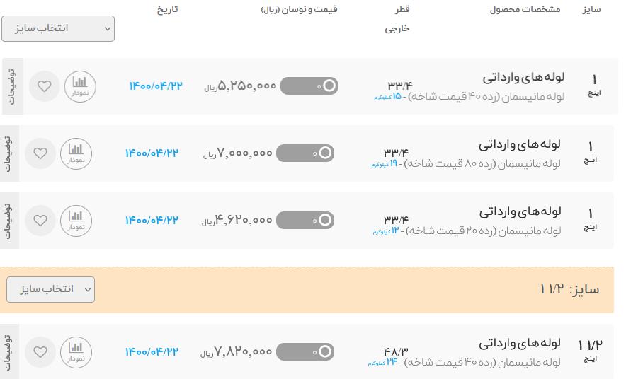 #لوله_مانیسمان وارداتی 🗓 دوشنبه 21 تیر ماه 1400 🗓 💠 رده 40 (قیمت شاخه)💠 1/2 اینچ با قطر خارجی 21/3 : 338,000 3/4 اینچ با قطر خارجی 26/7 : 447.000 1 اینچ با قطر خارجی 33/4 : 525.000 11/2 اینچ با قطر خارجی 48/3 : 782.000 2 اینچ با قطر خارجی 60/3 : 993,000 21/2 اینچ با قطر خارجی 73 : 1.706.000 4 اینچ با قطر خارجی 114/3 : 3.140.000 📌ارتباط با کارشناسان فروش :👇🏻 ☎️ 021-54103