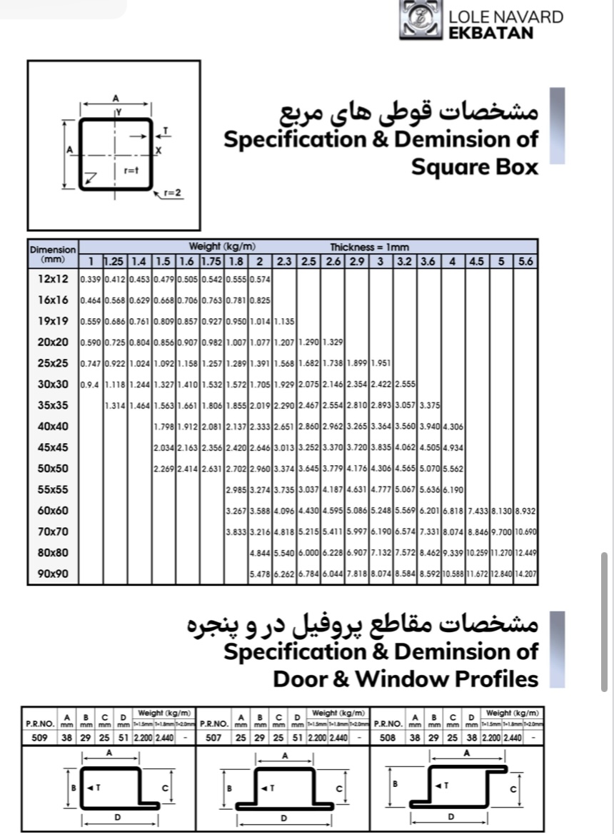 📌موجودی پروفیل اهوازی ، گیلانی و فولادی 📌 ⬇️پروفیل ضخامت 2میل 🔹40*40 🔸30*30 🔹40*80 🔸60*60 🔹20*40 🔸40*80 ⬇️پروفیل ضخامت 2/5 میل 🔸30*60 🔹90*90 🔸60*60 🔹30*30 ⬇️ پروفیل ضخامت 2/8 میل 🔸40*80 🔹60*60 ⬇️ پروفیل ضخامت 3 میل 🔸40*80 🔹60*60 🔹30*60 🔸100*40 🔹90*90 ✅مرجع تخصصی خرید و فروش انواع ورق گالوانیزه، رنگی، روغنی و سیاه ارائه دهنده همزمان خدمات برش، خم، فرمینگ و انبارداری تولید کننده و تامین کننده لوله داربست و قوطی پروفیل 📝 جهت استعلام قیمت و خرید لطفا با شماره زیر تماس حاصل فرمایید. 📞 تلفن: 031-9100-3131 📞واتساپ 09196693131 📣 لینک سایت شرکت زرین فولاد شهریاری : 🌐www.ZarrinFoolad.com 📱@zarrinfoolad (https://www.instagram.com/zarrinfoolad/) 🌐 t.me/zarinfoolad (https://t.me/zarinfoolad)