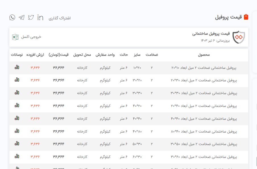 #ماهور_پروفیل_آسیا کارخانه تولیدی صنعتی ماهور پروفیل آسیا ❇️اولین تولید کننده،لوله و پروفیل مبلی سبک ( ورق روغنی ) در ابعاد و ضخامت های مختلف در استان اصفهان تلفکس : 03137609591 03137609593 03137609592 شماره فروش : 09120660963 کارخانه : 09139253347 #جهت_مشاهده_پروفایل_فولاد_ماهور👇🏻 📌https://foolad24.com/profile/13496 #جهت_مشاهده_اعلام_موجودی_فولاد_ماهور👇🏻 https://foolad24.com/profile/13496/inventory 📌https://t.me/gozareshgarfoolad24 👈🏻 لینک کانال خبری فولاد 24 راه های ارتباطی: 📱09120660963 📱09051188452 ☎️031_37609591 🔸لطفا جهت اطلاع از قیمت ها،تماس حاصل فرمایید. 🆔https://t.me/MahoorAsia 🌐http://www.mahoor.asia/