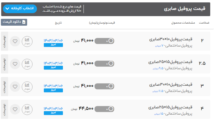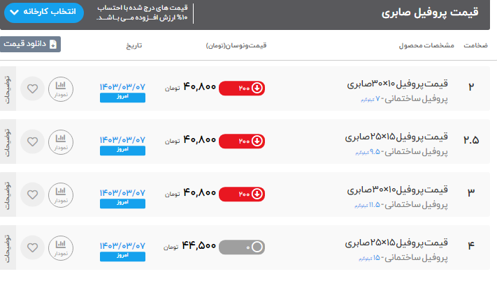 🗓 یکشنبه 6 خرداد ماه 1403 🗓 💲قیمت قوطی و پروفیل صابری قیمت ها با احتساب 10 درصد ارزش افزوده میباشد قوطی و پروفیل ضخامت 2 👈 407000 ريال قوطی و پروفیل ضخامت 2.5 👈 407000 ریال قوطی و پروفیل ضخامت 3 👈 407000 ریال قوطی و پروفیل ضخامت 4 👈 443000 ریال قوطی و پروفیل ضخامت 5 👈 443000 ریال قوطی و پروفیل ضخامت 6 👈 443000 ریال قوطی و پروفیل ضخامت 8 👈 463000 ریال قوطی و پروفیل ضخامت 10 👈 488000 ریال #قیمت #پروفیل #قوطی #صابری 🔺تهران آهن خریدی امن,آسان,ارزان 🔺 📞کارشناس فروش : آقای حیدری 🟢 لیست کامل قیمت پروفیل 🟢 (https://tehran-ahan.com/product-category/tube/?utm_source=telegram&utm_medium=social&utm_campaign=gheymatprofil) ⚙️برای مشاهده کامل جدول قیمت پروفیل می توانید به سایت تهران آهن مراجعه کنید: (50 خط ویژه): ☎️021-86073000 📱 instagram.com/tehran.ahan 🌏 https://b2n.ir/x13009 🔗 t.me/Tehranahan_co