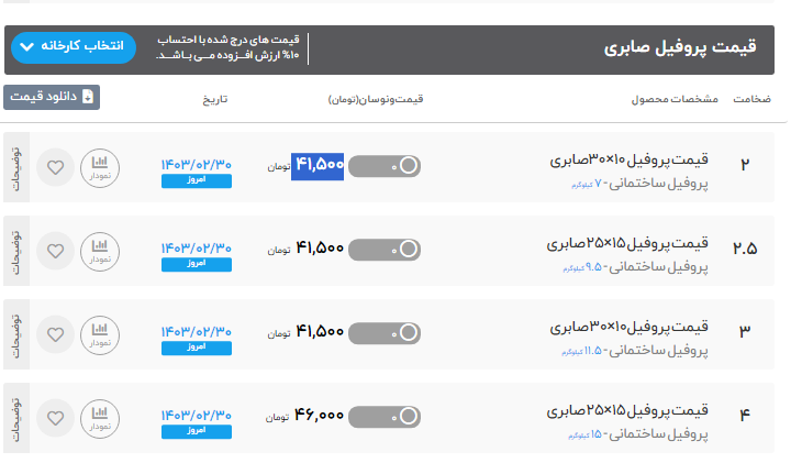 اعلام موجودی پروفیل فولاد 369 🔷 فولاد 369 🔷 ⏱تاریخ : 30 اردیبهشت 1403 🔷 قیمت پروفیل صدرا 🔷 🏭 محل بارگیری : کارخانه 🔷 2 ▫️ 41.200 🔷 2.5▫️ 41.200 🔷 3 ▫️ 41.200 🔷 4 ▫️41.200 📞 021-22210369 📞 021-22241369 🔷 داخلی 107 🌐 www.foolad369.com 🆔https://t.me/foollad369
