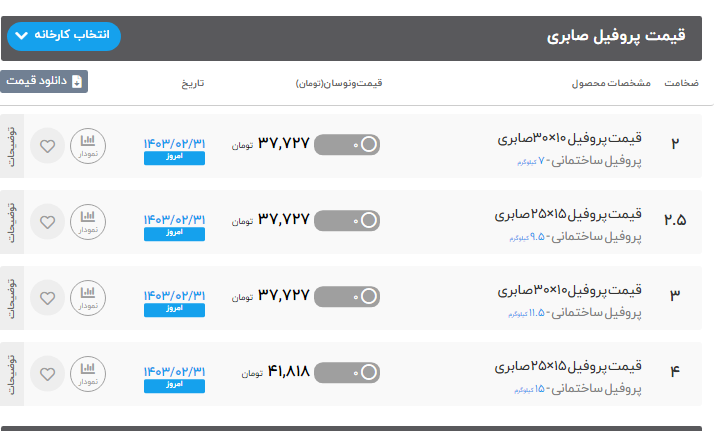 اعلام موجودی پروفیل فولاد 369 🔷 فولاد 369 🔷 ⏱تاریخ : 31 اردیبهشت 1403 🔷 قیمت پروفیل صدرا 🔷 🏭 محل بارگیری : کارخانه 🔷 2 ▫️ 41.200 🔷 2.5▫️ 41.200 🔷 3 ▫️ 41.200 🔷 4 ▫️41.200 📞 021-22210369 📞 021-22241369 🔷 داخلی 107 🌐 www.foolad369.com 🆔https://t.me/foollad369 Telegram (https://t.me/foollad369) Foolad369 ⭕️ نبض آهن با فولاد۳۶۹