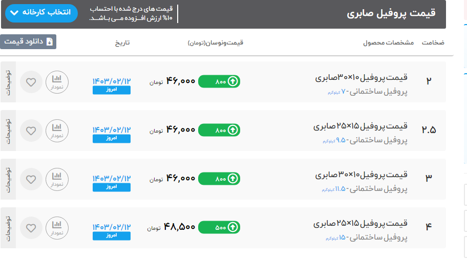 🗓 چهار شنبه 12 اردیبهشت ماه 1403 🗓 💲قیمت قوطی و پروفیل صابری قیمت ها با احتساب 10 درصد ارزش افزوده میباشد قوطی و پروفیل ضخامت 2 👈 460000 ريال قوطی و پروفیل ضخامت 2.5 👈 460000 ریال قوطی و پروفیل ضخامت 3 👈 460000 ریال قوطی و پروفیل ضخامت 4 👈 485000 ریال قوطی و پروفیل ضخامت 5 👈 485000 ریال قوطی و پروفیل ضخامت 6 👈 485000 ریال قوطی و پروفیل ضخامت 8 👈 505000 ریال قوطی و پروفیل ضخامت 10 👈 515000 ریال #قیمت #پروفیل #قوطی #صابری 🔺تهران آهن خریدی امن,آسان,ارزان 🔺 📞کارشناس فروش : آقای حیدری 🟢 لیست کامل قیمت پروفیل 🟢 ⚙️برای مشاهده کامل جدول قیمت پروفیل می توانید به سایت تهران آهن مراجعه کنید: (50 خط ویژه): ☎️021-86073000 📱 instagram.com/tehran.ahan 🌏 https://b2n.ir/x13009 🔗 t.me/Tehranahan_co