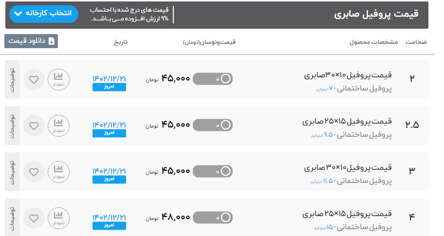 #قیمت #پروفیل #صابری 🌎 سه شنبه 22 اسفند ماه 1402 🌎 قوطی و پروفیل ضخامت 2 ⏪ 450000 ریال قوطی و پروفیل ضخامت 2.5 ⏪ 450000 ریال قوطی و پروفیل ضخامت 3 ⏪ 450000 ریال قوطی و پروفیل ضخامت 4 ⏪ 480000 ریال قوطی و پروفیل ضخامت 5 ⏪ 490000 ریال قوطی و پروفیل ضخامت 6 ⏪ 490000 ریال قوطی و پروفیل ضخامت 8 ⏪ 510000 ریال قوطی و پروفیل ضخامت 10 ⏪ 510000 ریال ✅تهران آهن خریدی امن,آسان,ارزان ✅کارشناس فروش :خانم رضایی 🔴 لیست کامل قیمت پروفیل 🔴 ⚙️برای مشاهده کامل جدول قیمت پروفیل می توانید به سایت تهران آهن مراجعه کنید: ✅ (50 خط ویژه): ☎️021-86073000 📱 instagram.com/tehran.ahan 🌏 https://b2n.ir/x13009 🔗 t.me/Tehran_ahan