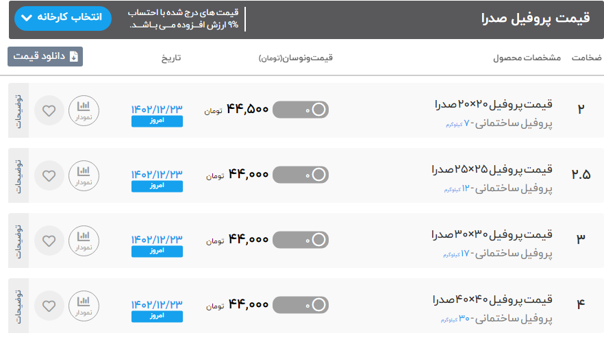 #قیمت #پروفیل #جهان 🌎 سه شنبه 22 اسفند ماه 1402 🌎 قوطی و پروفیل ضخامت 2 ⏪ 450000 ریال قوطی و پروفیل ضخامت 2.5 ⏪ 460000 ریال قوطی و پروفیل ضخامت 3 ⏪ 500000 ریال قوطی و پروفیل ضخامت 4 ⏪ 505000 ریال قوطی و پروفیل ضخامت 5 ⏪ 505000 ريال قوطی و پروفیل ضخامت 6 ⏪ 535000 ريال ✅تهران آهن خریدی امن,آسان,ارزان ✅کارشناس فروش :خانم رضایی 🔴 لیست کامل قیمت پروفیل 🔴 ⚙️برای مشاهده کامل جدول قیمت پروفیل می توانید به سایت تهران آهن مراجعه کنید: ✅ (50 خط ویژه): ☎️021-86073000 📱 instagram.com/tehran.ahan 🌏 https://b2n.ir/x13009 🔗 t.me/Tehran_ahan
