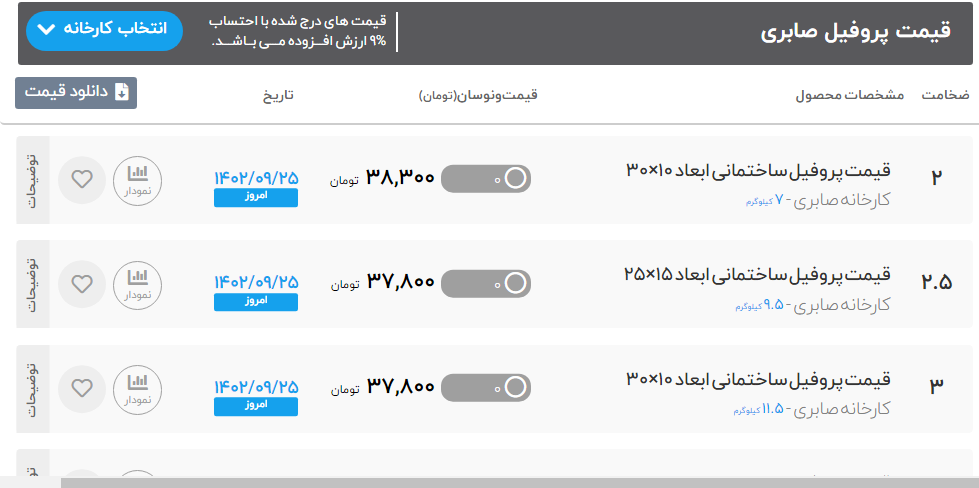 📌 پروفیل سبک 390,000 📌پروفیل سنگین 385,000 📌 ستونی 370,000 📌ناودانی۸و۱۰ سبک 250,000 📌ناودانی۸تا۱۶سنگین 250,000 📌نبشی۳-۳/۴میل 253,000 📌نبشی۴-۳میل 253,000 📌نبشی۴-۴میل 251,000 📌نبشی۵-۳میل 253,000 📌نبشی۵-۵/۴میل 246,000 📌نبشی۶-۵/۶میل 246,000 📌نبشی۸-۸میل 246,000 📌نبشی۱۰-۱۰میل 248,000 ✅ انبار اصفهان؛بارگیری سریع ☎️ 031-4202