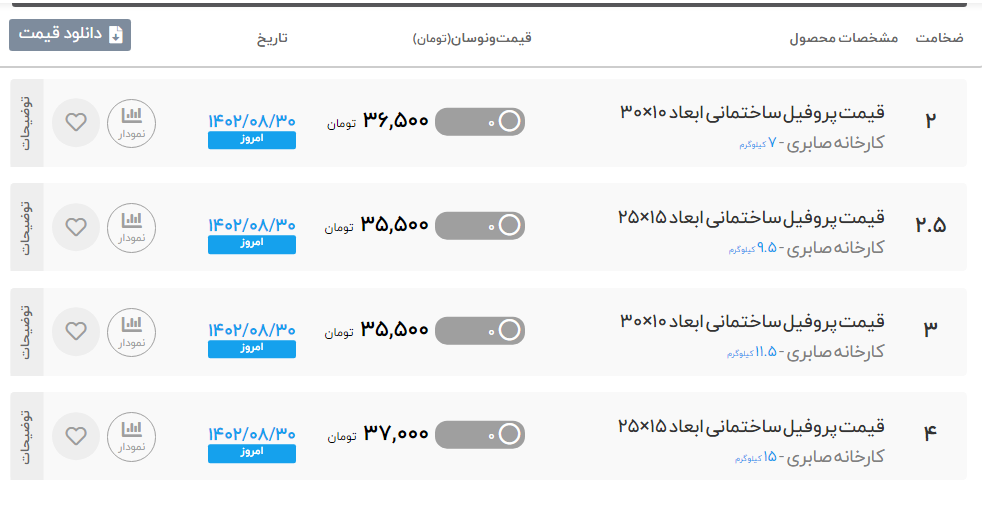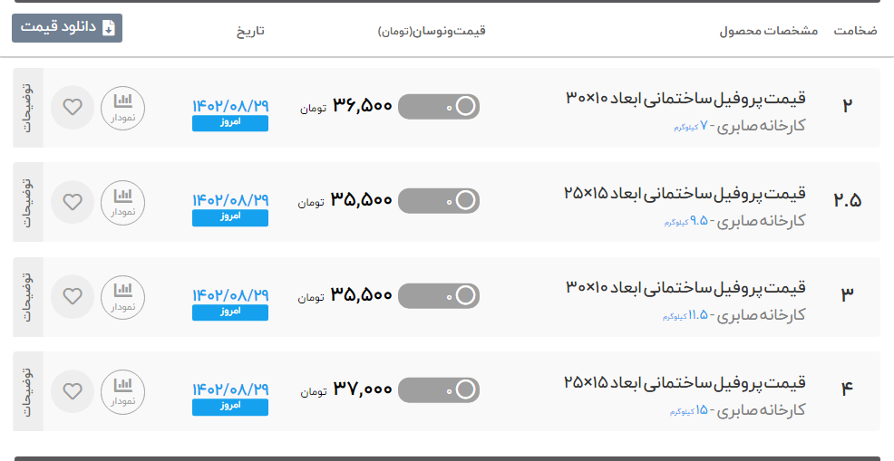 #قیمت #پروفیل #تهران_صدرا 🌎 سه شنبه 30 آبان ماه 1402 🌎 قوطی و پروفیل ضخامت 2 ⏪ 365000 ریال قوطی و پروفیل ضخامت 2.5 ⏪ 357000 ریال قوطی و پروفیل ضخامت 3 ⏪ 352000 ریال قوطی و پروفیل ضخامت 4 ⏪ 357000 ریال ✅تهران آهن خریدی امن,آسان,ارزان ✅کارشناس فروش :خانم حمداللهی 🔴 لیست کامل قیمت پروفیل 🔴 ⚙️برای مشاهده کامل جدول قیمت پروفیل می توانید به سایت تهران آهن مراجعه کنید: ✅ (50 خط ویژه): ☎️021-86073000 📱 instagram.com/tehran.ahan 🌏 https://b2n.ir/x13009 🔗 t.me/Tehran_ahan