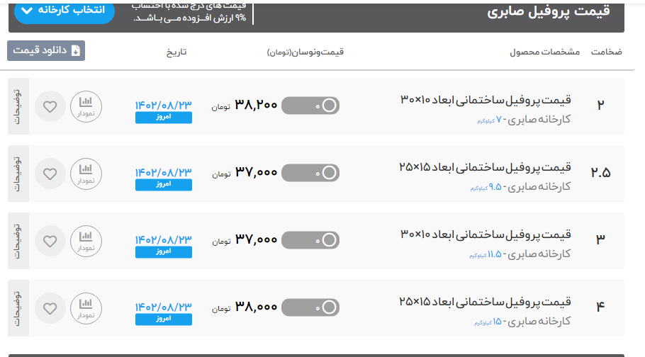 #قیمت #پروفیل #تهران_صدرا 🌎 سه شنبه 23 آبان ماه 1402 🌎 قوطی و پروفیل ضخامت 2 ⏪ 382000 ریال قوطی و پروفیل ضخامت 2.5 ⏪ 370000 ریال قوطی و پروفیل ضخامت 3 ⏪ 360000 ریال قوطی و پروفیل ضخامت 4 ⏪ 370000 ریال ✅تهران آهن خریدی امن,آسان,ارزان ✅کارشناس فروش :خانم حمداللهی 🔴 لیست کامل قیمت پروفیل (https://tehran-ahan.com/product-category/tube/?utm_source=telegram&utm_medium=social&utm_campaign=gheymatprofil) 🔴 ⚙️برای مشاهده کامل جدول قیمت پروفیل می توانید به سایت تهران آهن مراجعه کنید: ✅ (50 خط ویژه): ☎️021-86073000 📱 instagram.com/tehran.ahan 🌏 https://b2n.ir/x13009 🔗 t.me/Tehran_ahan