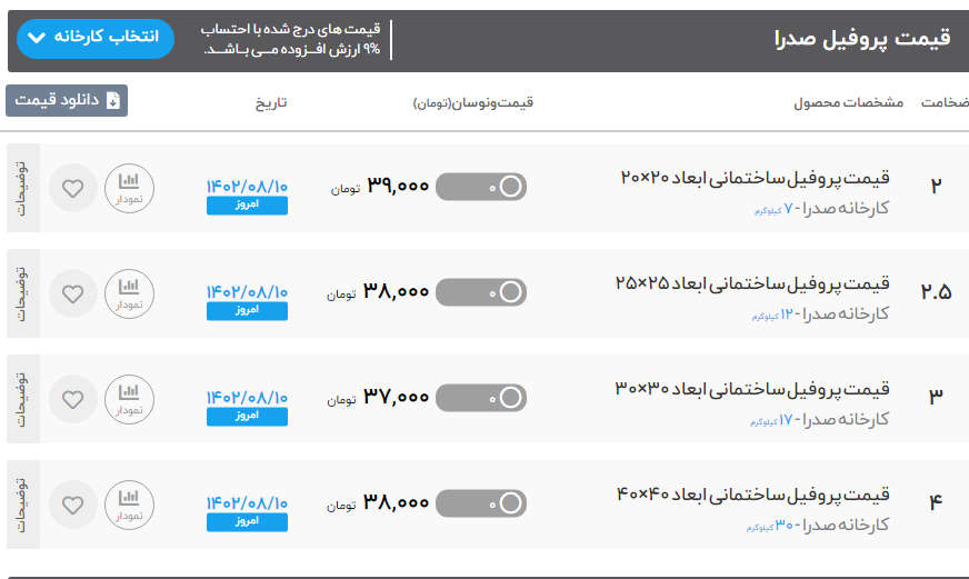 سایز80*80 ضخامت5 حالت6 متری محل تحویل کارخانه سایز90*90 ضخامت5 حالت6 متری محل تحویل کارخانه سایز100*100ضخامت5حالت6متری محل تحویل کارخانه سایز120*120ضخامت5 حالت6متری محل تحویل کارخانه سایز140*140ضخامت 5حالت6متری محل تحویل کارخانه سایز100*100ضخامت6حالت6متری محل تحویل کارخانه سایز120*120 ضخامت6حالت6متری محل تحویل کارخانه سایز60*120 ضخامت 6حالت6متری محل تحویل کارخانه سایز140*140ضخامت6حالت6 متری محل تحویل کارخانه سایز250*150ضخامت6حالت6 متری محل تحویل کارخانه جهت اطلاع از قیمت با شماره 03152467528 داخلی 100-103تماس بگیرید و یا از لینک تلگرام azinsepehralvand1@ ثبت سفارش کنید.