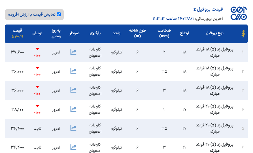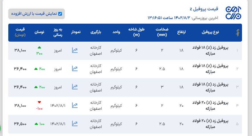 شرکت روهینا پیشرو سازه ☑️ تولید و فروش پروفیل زد👇👇👇 پروفیل زد ضخامت2میل پروفیل زد ضخامت 2/5 میل پروفیل زد ضخامت 3 میل 📌توضیحات : زد ارتفاع 18(روش تولید: رول فرمینگ ) فروش بصورت ترکیبی قیمت : تلفنی ☎️ 031-37755737-37753224 ☎️ 031-37753125-37756039 ☎️ 031-37750721-37750981 ☎️031-37769044 📱09134890341 📱0937788460