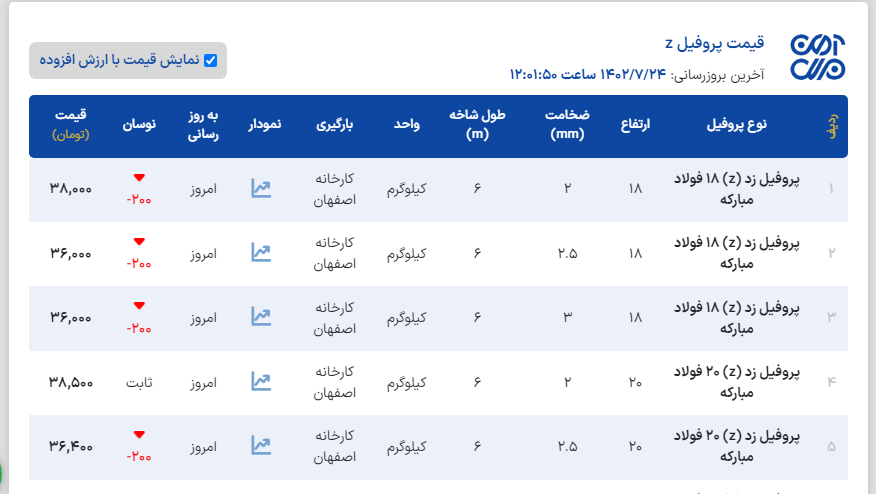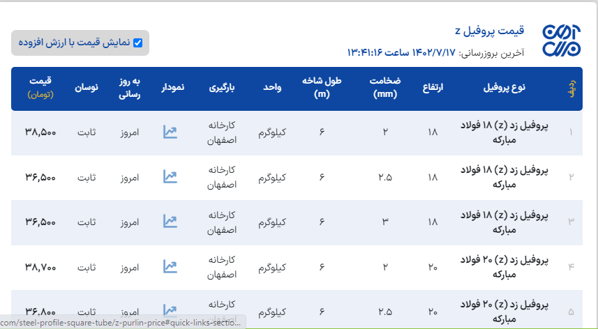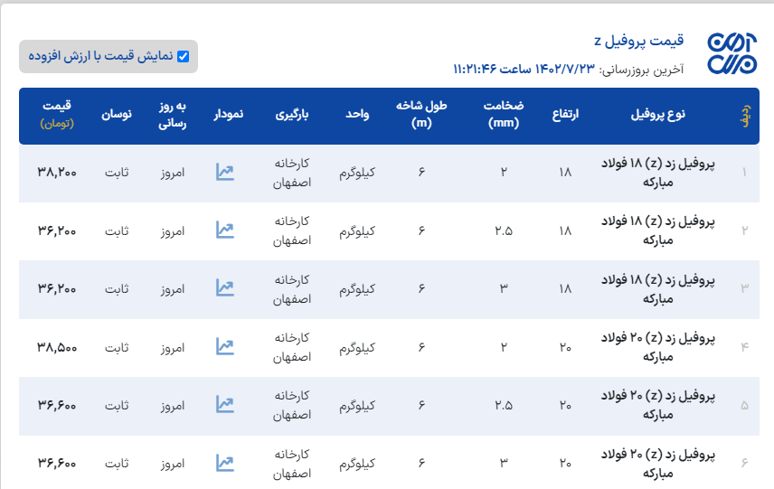 ضخامت 2 : ⬅️ 38500 تومان ضخامت 2/5 : ⬅️ 37000 تومان ضخامت 3 : ⬅️ 37000 تومان سیم 1/5 و 2/5 ⬅️ 31000 تومان ستونی (۱۲۰ تا ۲۰۰) ⬅️ 36000 تومان