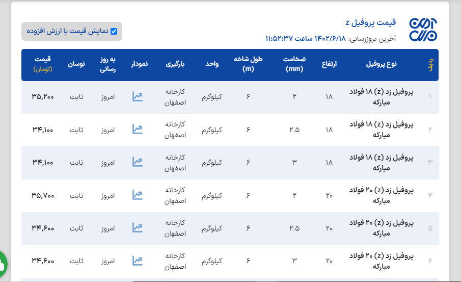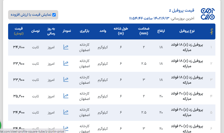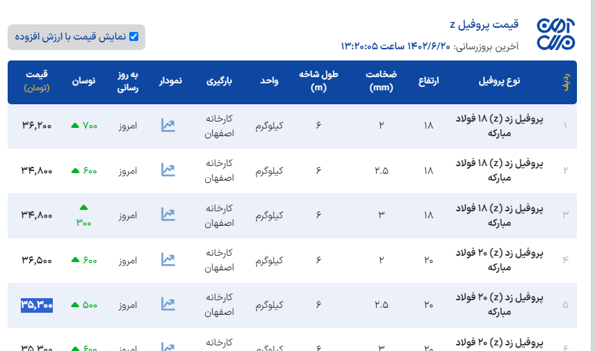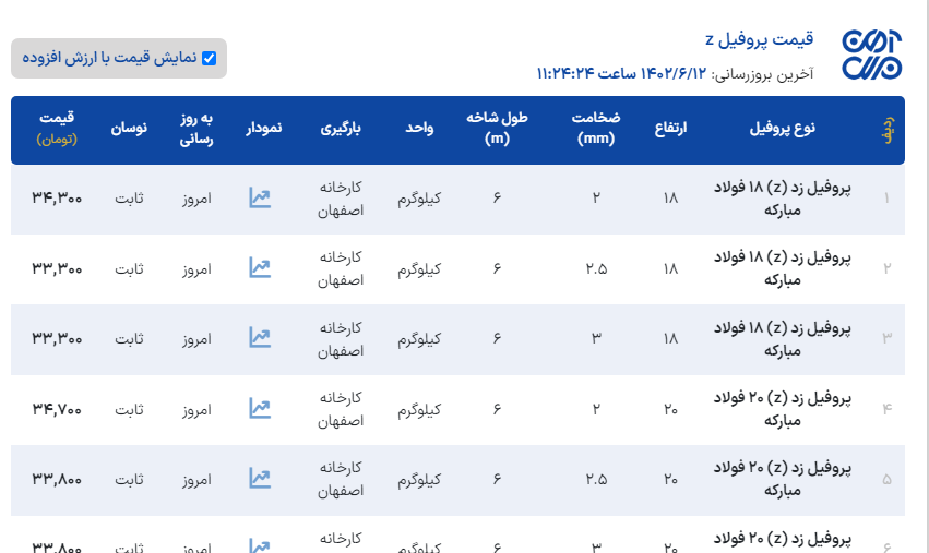 اعلام موجودی پروفیل z(پرلین)