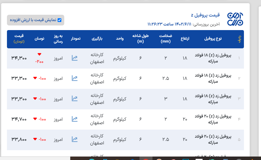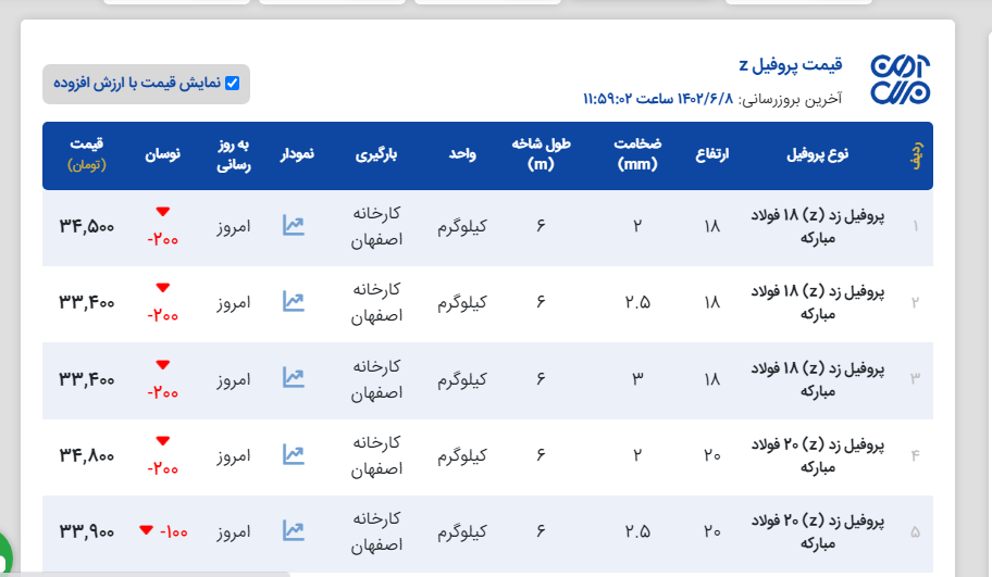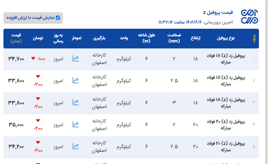 آهن کو-عزیزی ☑️ تولید و فروش پروفیل زد👇👇👇 پروفیل زد ضخامت2میل پروفیل زد ضخامت 2/5 میل پروفیل زد ضخامت 3 میل 📌توضیحات : زد ارتفاع 18(روش تولید: رول فرمینگ ) فروش بصورت ترکیبی قیمت : تلفنی ☎️ 031-37755737-37753224 ☎️ 031-37753125-37756039 ☎️ 031-37750721-37750981 ☎️031-37769044 📱09134890341 📱0937788460