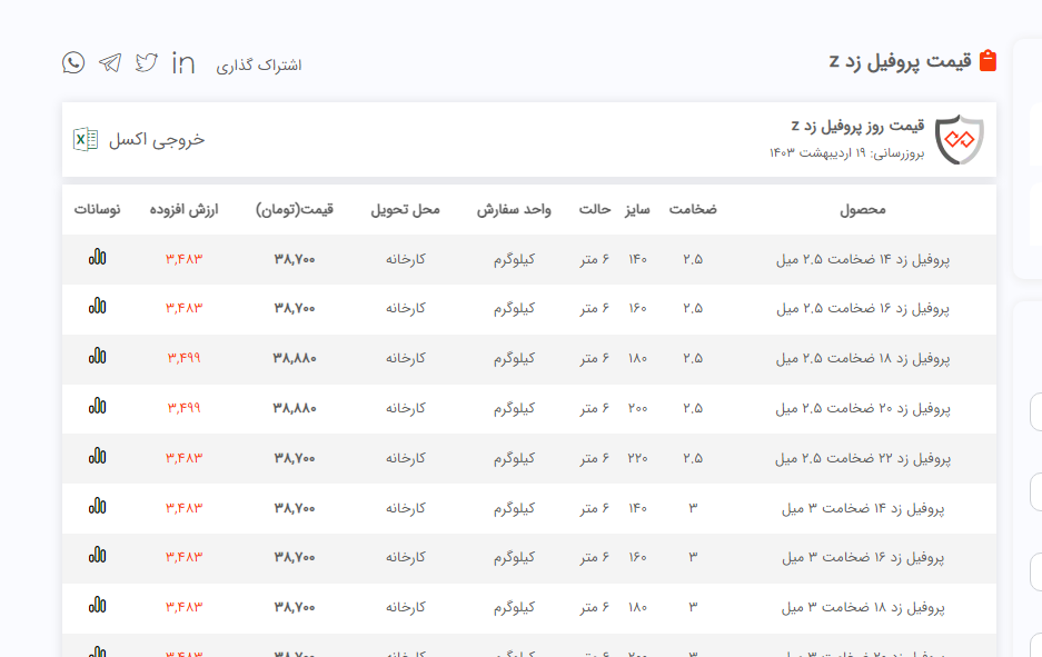 فروش ویژه پروفیل زد فولادی 3 میل - 6 متری پانچ شده استاندارد قیمت = 42850 09134341883