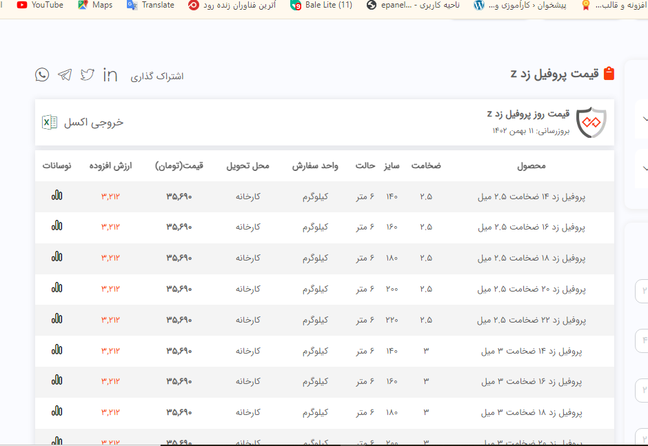 [ Album ] #آراد_صنعت_اسپادانا #مقاوم_پروفیل_نقش_جهان 💠برش ورق از ضخامت 2 میلیمتر الی 25 میلیمتر به طول 7 متر 💠خم ورق از ضخامت 2 میلیمتر الی 15 میلیمتر تا طول13 متر 💠تولید پروفیل زد در ابعاد مختلف تا ضخامت 6 میلیمتر به طول 13 متر همراه با پانچ 💠تولید پروفیل سی پرلین در ابعاد مختلف 💠تولید آبرو (سوله و گلخانه ) 💠تولید ورق کرکره 💠برش CNC و پلاسما 💠تهیه متریال و ساخت سازه های فلزی #جهت_مشاهده_پروفایل_آراد_صنعت_اسپادانا https://foolad24.com/profile/638 #جهت_مشاهده_اعلام_موجودی_آراد_صنعت_اسپادانا https://foolad24.com/profile/638/inventory ⚜️برای کسب اطلاعات بیشتر با شماره های زیر تماس بگیرید : 031-42998 09101194070 09134004070 09131124070 👈🏻راه های ارتباطی با ما : https://t.me/aradsanat4070