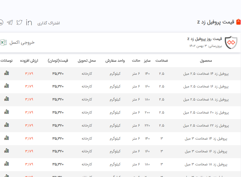 روهینا پیشرو سازه ☑️ تولید و فروش پروفیل زد👇👇👇 پروفیل زد ضخامت 2 میل پروفیل زد ضخامت 2/5 میل پروفیل زد ضخامت 3 میل 📌توضیحات : زد ارتفاع 18(روش تولید: رول فرمینگ ) فروش بصورت ترکیبی قیمت : تلفنی ☎️ 4604 📱09134890341 📱09377884603
