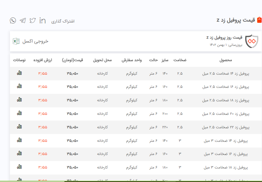 ⭕️#آراد_صنعت_اسپادانا⭕️ ⭕️#مقاوم_پروفیل_نقش_جهان⭕️ 🟢موجودی قوطی و پروفیل🟢 ✔️قوطی ۱۳*۱۳ ضخامت ۴ ✔️قوطی ۱۰۰*۱۰۰ ضخامت ۲.۵ و ۳ و ۳.۳ ✔️قوطی ۹۰*۹۰ ضخامت ۲.۵ و ۳ و ۳.۵ و ۴ ✔️قوطی ۳۰ *۵۰ ضخامت ۲ ✔️قوطی ۵۰ *۵۰ ضخامت ۲ و ۲.۳ و ۲.۵ ۳ ✔️قوطی ۴۰ *۶۰ ضخامت ۲.۵ و ۳ ✔️قوطی ۴۰*۴۰ ضخامت ۲ ✔️قوطی ۲۰*۲۰ ضخامت ۲ 🟢زد ۲میل(طبق سفارش) 🟢زد ۲.۵ میل(طبق سفارش) 🟢زد ۳ میل(طبق سفارش) 🟩لوله داربستی ۲ 🟩لوله داربستی ۲.۵ 🟩لوله داربستی ۳ 🔷پروفیل ۵۰۸ 🟡زدبند ————————————- خدمات برش ورق از ۲ تا ۲۵ میل✏️ 🟡 CNC🟡 ✅پانچ ورق✅ ✔️خدمات خم ورق از ۲ میل تا ۱۵ میل #جهت_مشاهده_پروفایل_آراد_صنعت_اسپادانا https://foolad24.com/profile/638 #جهت_مشاهده_اعلام_موجودی_آراد_صنعت_اسپادانا https://foolad24.com/profile/638/inventory 📌https://t.me/gozareshgarfoolad24 👈🏻 لینک کانال خبری فولاد 24 ⚜️برای کسب اطلاعات بیشتر با شماره های زیر تماس بگیرید : 031-42998 09101194070 09134004070 09131124070 👈🏻راه های ارتباطی با ما : https://t.me/aradsanat4070