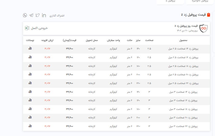 🟢موجودی قوطی و پروفیل🟢 قوطی ۱۳*۱۳ ضخامت ۴ قوطی ۱۰۰*۱۰۰ ضخامت ۲.۵ و ۳ و ۳.۳ قوطی ۹۰*۹۰ ضخامت ۲.۵ و ۳ و ۳.۵ و ۴ قوطی ۳۰ *۵۰ ضخامت ۲ قوطی ۵۰ *۵۰ ضخامت ۲ و ۲.۳ و ۲.۵ ۳ قوطی ۴۰ *۶۰ ضخامت ۲.۵ و ۳ قوطی ۴۰*۴۰ ضخامت ۲ قوطی ۲۰*۲۰ ضخامت ۲ 🟢زد ۲میل(طبق سفارش) 🟢زد ۲.۵ میل(طبق سفارش) 🟢زد ۳ میل(طبق سفارش) 🟩لوله داربستی ۲ 🟩لوله داربستی ۲.۵ 🟩لوله داربستی ۳ پروفیل ۵۰۸