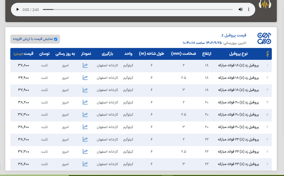 #فولاد_کسری_اسپادانا هلدینگ فولاد کسری اسپادانا عرضه انواع ورق های سیاه اسیدشویی روغنی رنگی و گالوانیزه ساخت مخازن و اسکلت فلزی تولید پروفیل z و غیره... #جهت_مشاهده_پروفایل_فولاد_کسری_اسپادانا👇🏻 📌https://foolad24.com/profile/664 #جهت_مشاهده_اعلام_موجودی_فولاد_کسری_اسپادانا👇🏻 https://foolad24.com/profile/664/inventory 🔈🔈🔈 شماره های تماس فولادکسری اسپادانا👇👇 ☎️031-36940000 📣📣لینک عضویت کانال👇👇 https://t.me/fooladkasraespadana https://foolad24.com/profile/664