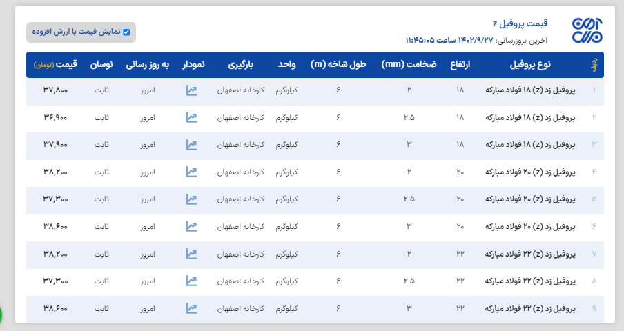 #آراد_صنعت_اسپادانا 💠برش ورق از ضخامت 2 میلیمتر الی 25 میلیمتر به طول 7 متر 💠خم ورق از ضخامت 2 میلیمتر الی 15 میلیمتر تا طول13 متر 💠تولید پروفیل زد در ابعاد مختلف تا ضخامت 6 میلیمتر به طول 13 متر همراه با پانچ 💠تولید پروفیل سی پرلین در ابعاد مختلف 💠تولید آبرو (سوله و گلخانه ) 💠تولید ورق کرکره 💠برش CNC و پلاسما 💠تهیه متریال و ساخت سازه های فلزی #جهت_مشاهده_پروفایل_آراد_صنعت_اسپادانا https://foolad24.com/profile/638 #جهت_مشاهده_اعلام_موجودی_آراد_صنعت_اسپادانا https://foolad24.com/profile/638/inventory ⚜️برای کسب اطلاعات بیشتر با شماره های زیر تماس بگیرید : 031-42998 09101194070 09134004070 09131124070 👈🏻راه های ارتباطی با ما : https://t.me/aradsanat4070