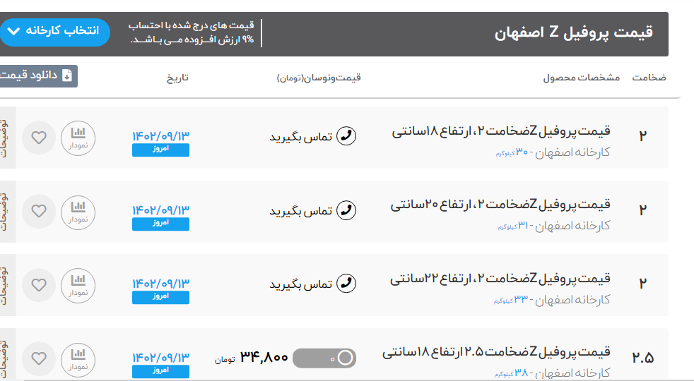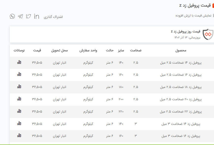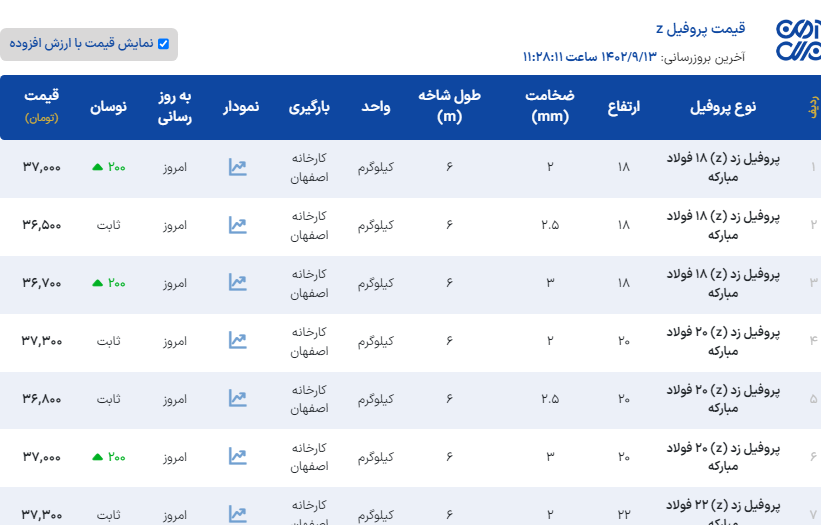 تولیدوتامین پروفیل Zهمراه باپانچ ازضخامت1.5الی4میلیمتر ارسال به سرتاسرکشور.