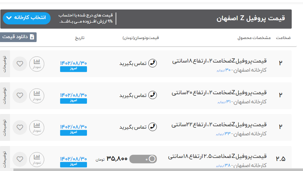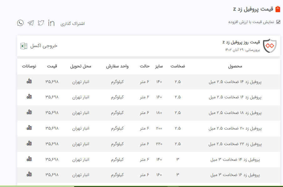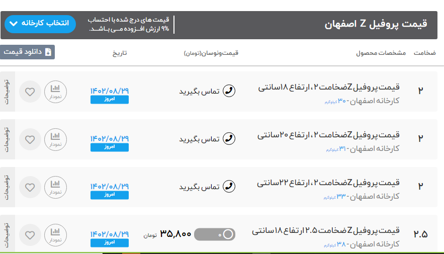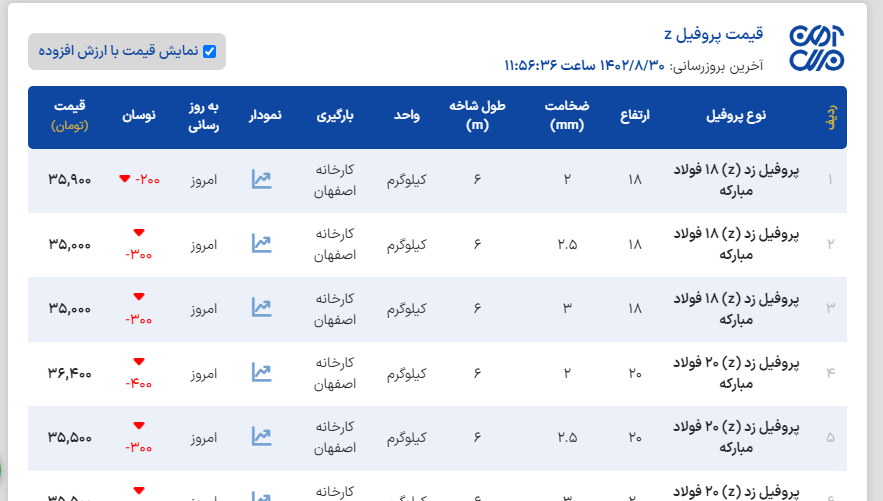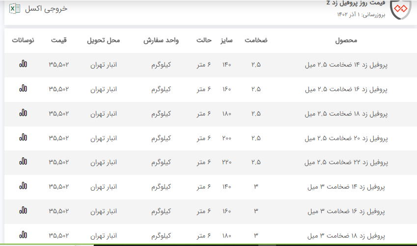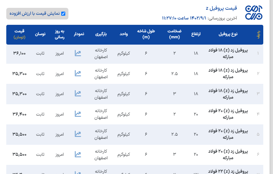اعلام موجودی پروفیل z(پرلین)