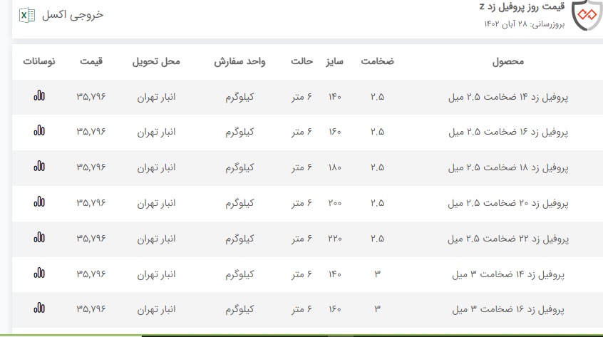 📌 پروفیل سبک 386,000 📌پروفیل سنگین 379,000 📌 ستونی 355,000 📌ناودانی۸و۱۰ سبک 255,000 📌ناودانی۸تا۱۶سنگین 255,000 📌نبشی۳-۳/۴میل 250,000 📌نبشی۴-۳میل 250,000 📌نبشی۴-۴میل 248,000 📌نبشی۵-۳میل 250,000 📌نبشی۵-۵/۴میل 240,000 📌نبشی۶-۵/۶میل 240,000 📌نبشی۸-۸میل 240,000 📌نبشی۱۰-۱۰میل 247,000 ✅ انبار اصفهان؛بارگیری سریع ☎️ 031-4202 #آهن_جم #آهن_آلات_پورجم #قیمت_ناودانی #قیمت_نبشی #قیمت_پروفیل