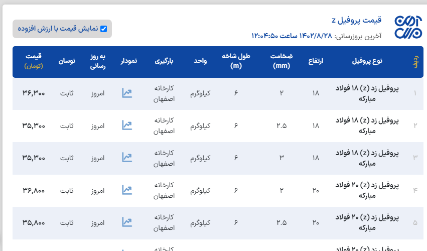 شرکت ویستا صنعت هونام تولید پروفیل زد با نازلترین قیمت بازار ضخامت : 2 2.5 3 *********************فروش ویژه پروفیل زد ضخامت 2****************** *****************************آماده بارگیری************************** ارتفاع: 18 * پانچ شده , پانچ لوبیایی , فرمینگ * تولید زد با نقشه طبق نظر مشتری امکان پذیر میباشد * قیمت قابل مذاکره * در رابطه با تولید زد فولادی بصورت اجرتی برای رول و رول نواربر شده آماده به انجام وظیفه میباشد 031-55889 031-35540681 031-35540682 031-35540755-8