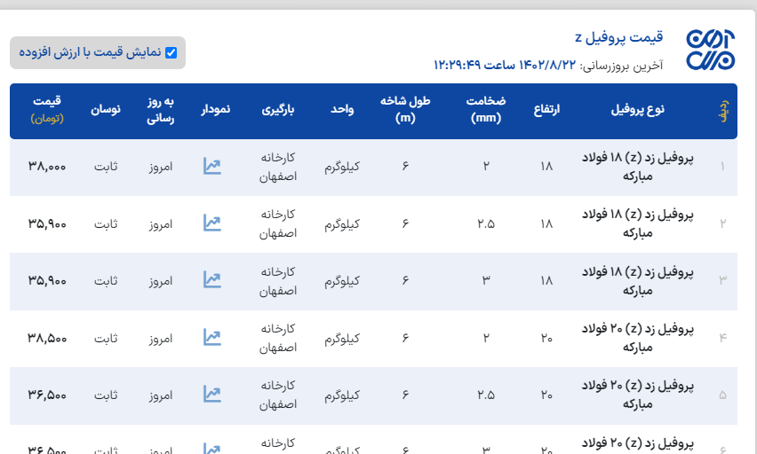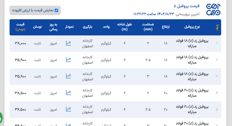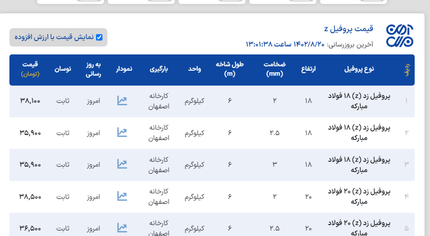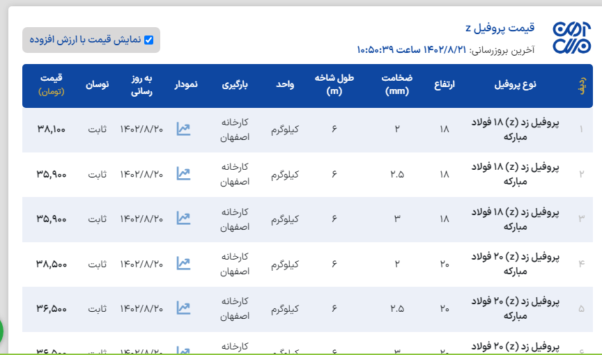📋لیست قیمت #پروفیلZ بروزرسانی شد. 🗓 دوشنبه 22 آبان ۱۴۰۲ ⬜️پروفیل Z ضخامت ۲.۵ میل ⬛️سایز ۱۸ / قیمت: 36500 ⬛️سایز ۲۰ / قیمت: 36700 ⬛️سایز ۲۲ / قیمت: 36200 ⬜️پروفیل Z ضخامت 3 میل ⬛️سایز ۱۸ / قیمت: 36700 ⬛️سایز ۲۰ / قیمت: 36700 ⬛️سایز ۲۲ / قیمت: 36500 📊 مشاهده لیست کامل قیمت #پروفیلZ کارخانه تهران 🔗https://ahanbazar.com/product-category/profile/z-profile/ 🔶 Website: www.ahanbazar.com 🔷 Telegram : @ahanbaazar 🔴 instagram : https://instagram.com/ahanbazar ☎️ تلفن : 021 - 55445622 021 - 55445623 🔶 تهران - اتوبان آزادگان - بازار آهن مکان - خ ششم غربی - پلاک 1622 📉📈 به علت نوسانات قیمت در بازارآهن، در صورت اقدام به خرید, گرفتن تأییدیه قیمت از دفتر فروش #آهن_بازار الزامی میباشد.
