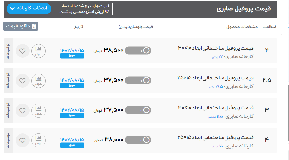 #قیمت #پروفیل #تهران_شرق 🌎 دوشنبه 15 آبان ماه 1402 🌎 قوطی و پروفیل ضخامت 2 ⏪ 385000 ریال قوطی و پروفیل ضخامت 2.5 ⏪ 375000 ریال قوطی و پروفیل ضخامت 3 ⏪ 375000 ریال قوطی و پروفیل ضخامت 4 ⏪ 380000 ریال قوطی و پروفیل ضخامت 5 ⏪ 390000 ریال قوطی و پروفیل ضخامت 6 ⏪ 390000 ریال قوطی و پروفیل ضخامت 8 ⏪ 410000 ریال ✅تهران آهن خریدی امن,آسان,ارزان ✅کارشناس فروش :خانم حمداللهی 🔴 لیست کامل قیمت پروفیل 🔴 ⚙️برای مشاهده کامل جدول قیمت پروفیل می توانید به سایت تهران آهن مراجعه کنید: ✅ (50 خط ویژه): ☎️021-86073000 📱 instagram.com/tehran.ahan 🌏 https://b2n.ir/x13009 🔗 t.me/Tehran_ahan