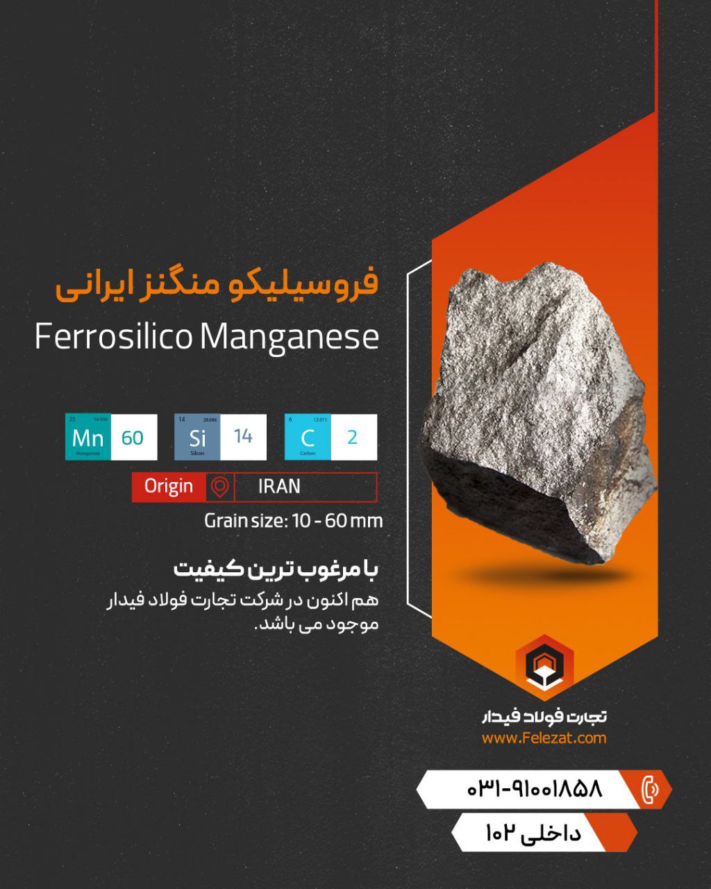 فروش ویژه انواع فروسیلیس با دانه بندی 10-60 و 3-10 و 0-20 سیلیس 70-72 سیلیس 60-65 فروش فروسیلیکومنگنز با دانه بندی 10-60 منگنز 60 و سیلیس 14 آنالیز منگنز 50 و سیلیس 10 ما مفتخریم که مرغوب ترین محصولات را جهت رشد و بهبود صنایع کشور در اختیار شما تولیدکنندگان عزیز قرار می دهیم تجارت فولاد فیدار سپاهان جهت سفارش 09130061858 03191001858