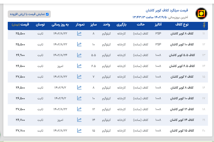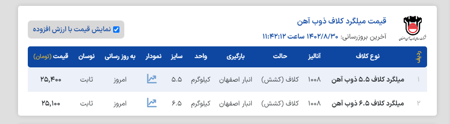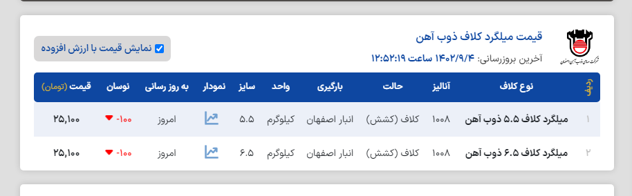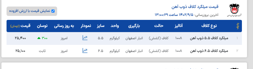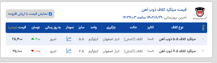 کلاف ذوبی گرید ۱۰۰۸ و در انبار اصفهان موجود میباشد. ۵/۵—— ۶/۵——