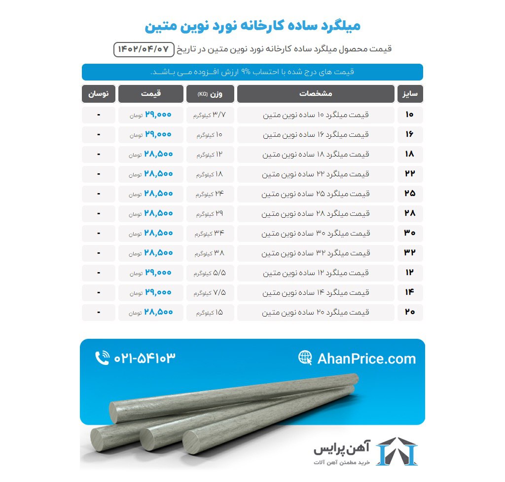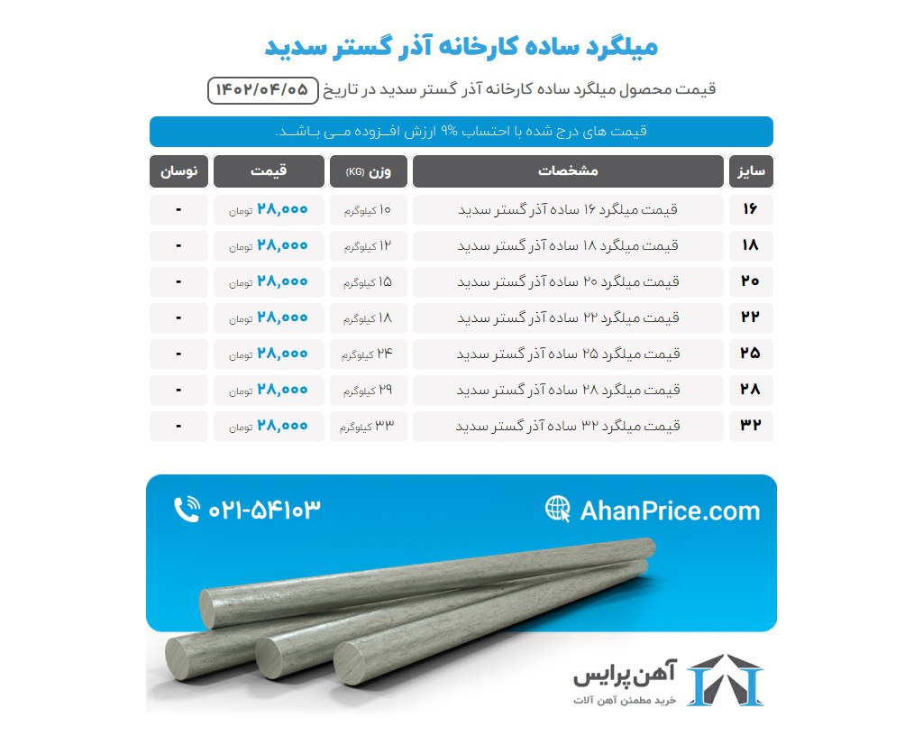 اعلام موجودی میلگرد ساده