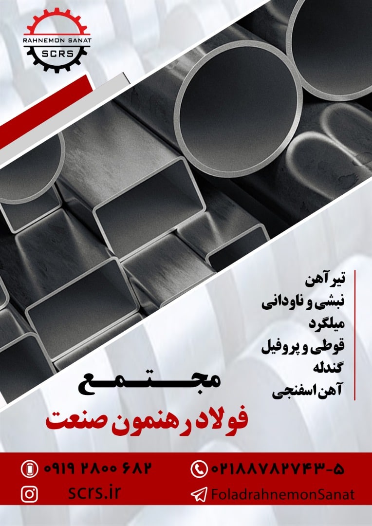 ⬅️شرکت #نگین_فولاد_السا 💠فروش انواع مقاطع فولادی 🔸تیرآهن ساختمانی و صنعتی 🔸هاش سبک و سنگین 🔸نبشی و ناودانی 🔸میلگرد آجدار و ساده 🔸ورق سیاه، گالوانیزه و روغنی 🔸انواع پروفیل و ستونی ✅فروش با فاکتور رسمی ✅باربری به تمام نقاط ایران شماره های تماس:👇🏼 ☎️021-44448200 📱09058229545 🆔تلگرام شرکت: - تیرآهن و ستونی و هاش: 🆔https://t.me/neginfooladbeam - میلگرد ورق نبشی و ناودانی و پروفیل: 🆔https://t.me/neginfoolad 📌📌https://www.instagram.com/neginfoolad.ir/ 🌐www.neginfoolad.ir https://foolad24.com/profile/10929